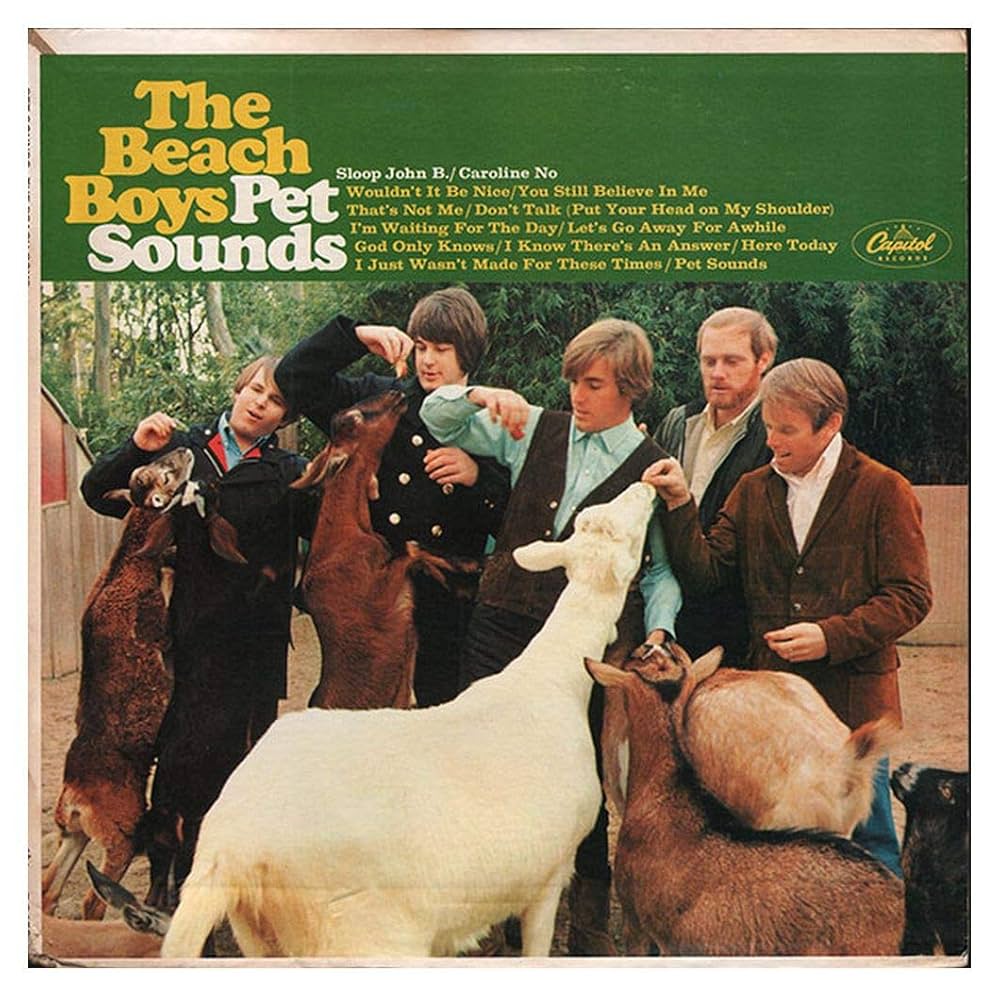 So here’s the deal: Brian takes control of the whole thing. He wants to outdo Rubber Soul by the Beatles, his new rivals (though it seems to be a one-way rivalry). He ditches the traditional pop structures (which we still love, by the way!), slows down the overall tempos, tosses out the surf, the cars, and the girls, and seriously beefs up the arrangements (percussion, strings, horns). He conceives the album as a whole rather than just a collection of songs (exactly what the Beatles had done with Rubber Soul). And for eternity, he delivers Pet Sounds.